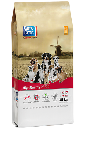 Verwacht je periodiek extreme inspanning en prestaties van je hond en is hij meer dan 3 uur per dag (intensief) in beweging? Denk hierbij aan honden tijdens het jachtseizoen of honden die aan endurance training doen. Voorkom tekorten en voer je hond tijdens deze periode CaroCroc High Energy. Dankzij de uitgebalanceerde samenstelling met hoogwaardige grondstoffen, zoals dierlijke eiwitten, vetten, mineralen en een optimale verhouding omega-3 en -6 vetzuren, biedt CaroCroc High Energy jouw hond datgene wat hij nodig heeft.